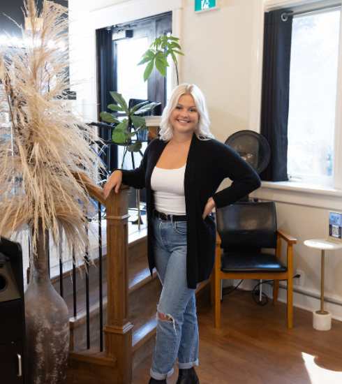 When she’s not behind the chair at Salon@Church, you’ll find Katie embracing the outdoors—hiking, staying active, or spending time with family and friends. She’s also known for pouring a cold pint at Kame & Kettle, making her a familiar face in the community.